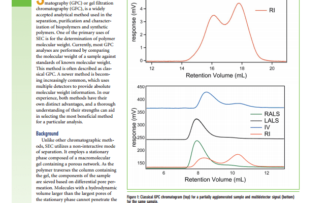 The purpose of this work was to compare the molecular weight values generated using standardized GPC and Tetradetection GPC with Light Scattering.
