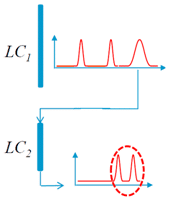 LC-LC,一个特定的高峰(或保留时间范围)从第一个HPLC色谱柱被选择在LC上进行二次分离2.与LCxLC相比,LC可以对特定的峰实现更大的分离2