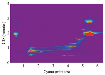 2D高效液相色谱法也可用于监测复杂混合物的微小变化。这可以通过评估样本的2D地图来实现(见下文)。